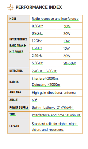Dual-channel detection and six-channel interference cover 95% of drone models, detecting and interfering with common signal bands.